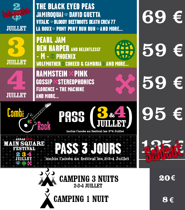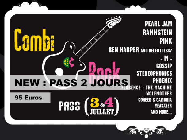 Pour les amateurs de rock, le festival a mis en place le Pass Combi Rock pour les journées du 3 et du 4 Juillet au prix de 95 € (23 € de gagné) .