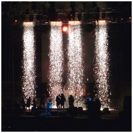 19h45, nous nous dirigeons vers l’entrée, histoire d’essayer d’avoir de bonnes places et voir qui passe en première partie. Après s’être adapté à l’altitude des gradins et aux passages réguliers des vendeurs ambulants (boissons, chips et crèmes glacées), nous guettons en vain l’invité, comme indiqué sur le ticket, qui finalement a dû se décommander, car avec un petit ¼ de retard, les premières notes de « Cosmogony » résonnent dans les Arènes….