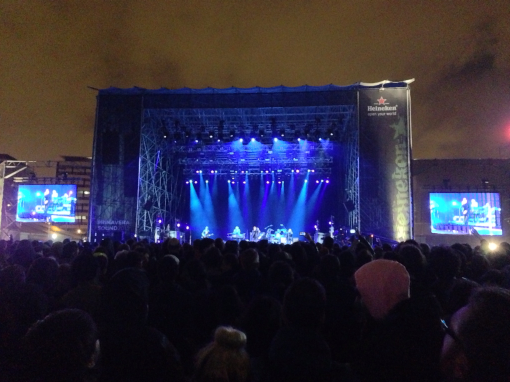 En attendant la bouffe on a Neurosis dans les oreilles, sur une scène non loin de là. Faut aimer. Retour devant la scène, au bout d’une 1/2 heure, petite surprise, sur le balcon Heineken c’est Wedding Present qui tente de nous faire patienter. Sympathique même si on est loin de leur tube « Silver Shorts » (1992), ça fait patienter tranquillement au lieu de rester planter à rien faire d’autre que de regarder les roadies de Blur finir les réglages.