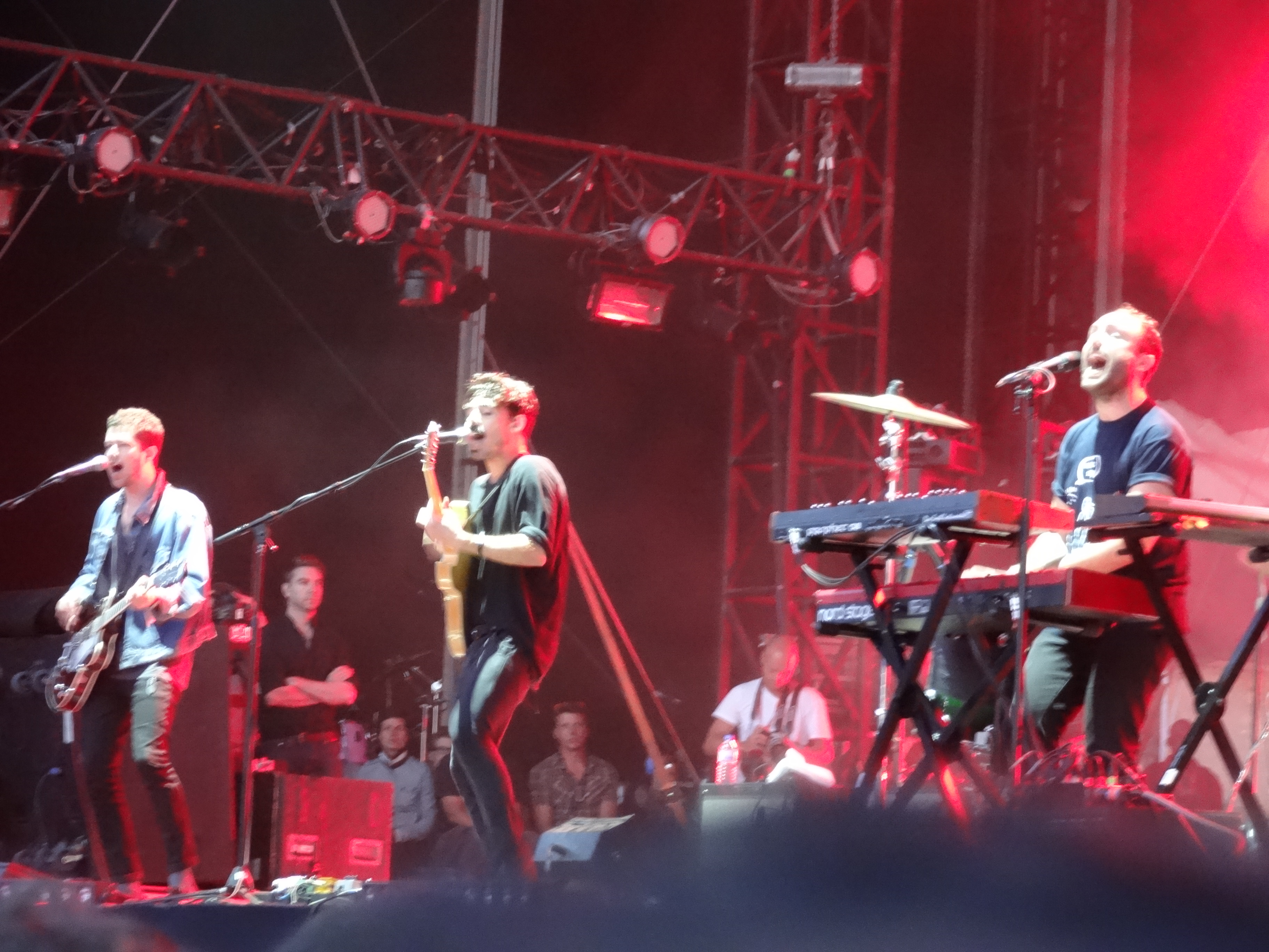 Ce duo donc, fondé en 2009 par Ripley Johnson et Sanae Yamada (madame Johnson à la ville) nous ont nourri de leur rock psyché à coups de boucles répétitives et lancinantes rendant notre attente non seulement plaisante mais intéressante du coup. Son impeccable, voix un peu noyées mais personnellement une bonne découverte. Nous arrivons enfin à choper quelques jetons pour les boissons et il est déjà temps de se précipiter vers la grande scène (il n’y en a que deux sur le site du Fort Saint Père, la raison de cela est contenue dans le nom même du site comme vous pouvez l’imaginer) pour assister au set des californiens de Local Natives. Pas trop mal car pas du tout répétitif mais je m’attendais à autre chose. Quelques bons morceaux pêchus dont un cover des Talking Heads: « Warning sign ». Ils en ont profité pour nous lancer la première chanson du nouvel album à venir. La voix de Taylor Rice, le chanteur principal, m’a un peu fait penser au groupe Archive, même si musicalement ils n’ont rien à voir du tout.