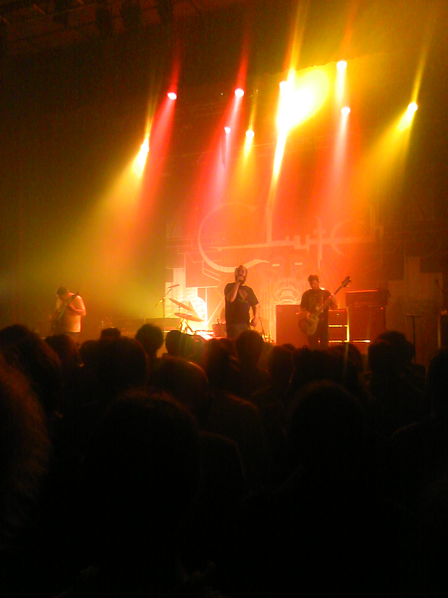 Alors que j’attendais ainsi les Mexican Morrissey et m’apprêtais à évaluer la valeur de leur référence nominale (mon frère m’ayant baigné dans Morrissey et The Smiths entre autres), en arrivant dans la salle devenue d’un coup plus peuplée, tout s’est activé: la lumière, les instruments, les distos bien grasses, le rythme a tourné tantôt bluesy tantôt métal, et les barbes… Ha, les barbes ! … Je compris en un instant que le duo précédent pour lequel je ne saurais inventer de classification musicale, était en fait les Mexican Morrissey et que la tête d’affiche ce soir là, qui méritait les t-shirts métalleux et les cheveux se balançant d’avant en arrière, c’était, comme le signifiait le décors : Clutch !!