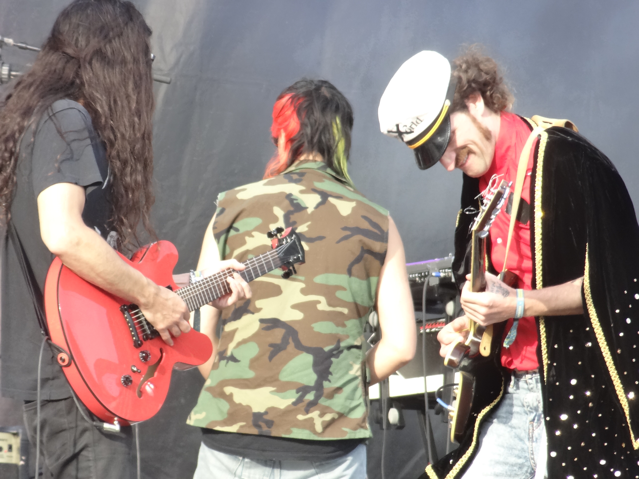 La soirée s’est terminée pour moi sur un doublé à savoir deux groupes qui passaient en même temps : Thee Oh Sees, que j’avais déjà vu deux fois et que je savais capable d’emmener du monde, et Shellac, que je connaissais beaucoup moins. J’ai donc profité du moment ou John Dwyer abordait quelques-uns de ses anciens morceaux pour filer, en face, voir ce qu’il se passait chez Shellac. J’ai tenu presque deux morceaux. Je n’ai pas accroché du tout, il faudra que je réessaie en version disque, car on me dit que c’est bien. Je n’étais peut-être pas dans les meilleures conditions pour apprécier. Du coup, je suis retourné voir la fin du set des Oh Sees pour le plus grand plaisir de mes chères petites oreilles. Le son était puissant grâce aux deux batteries et donnait vraiment la pêche… Comme s’il y en avait eu vraiment besoin…