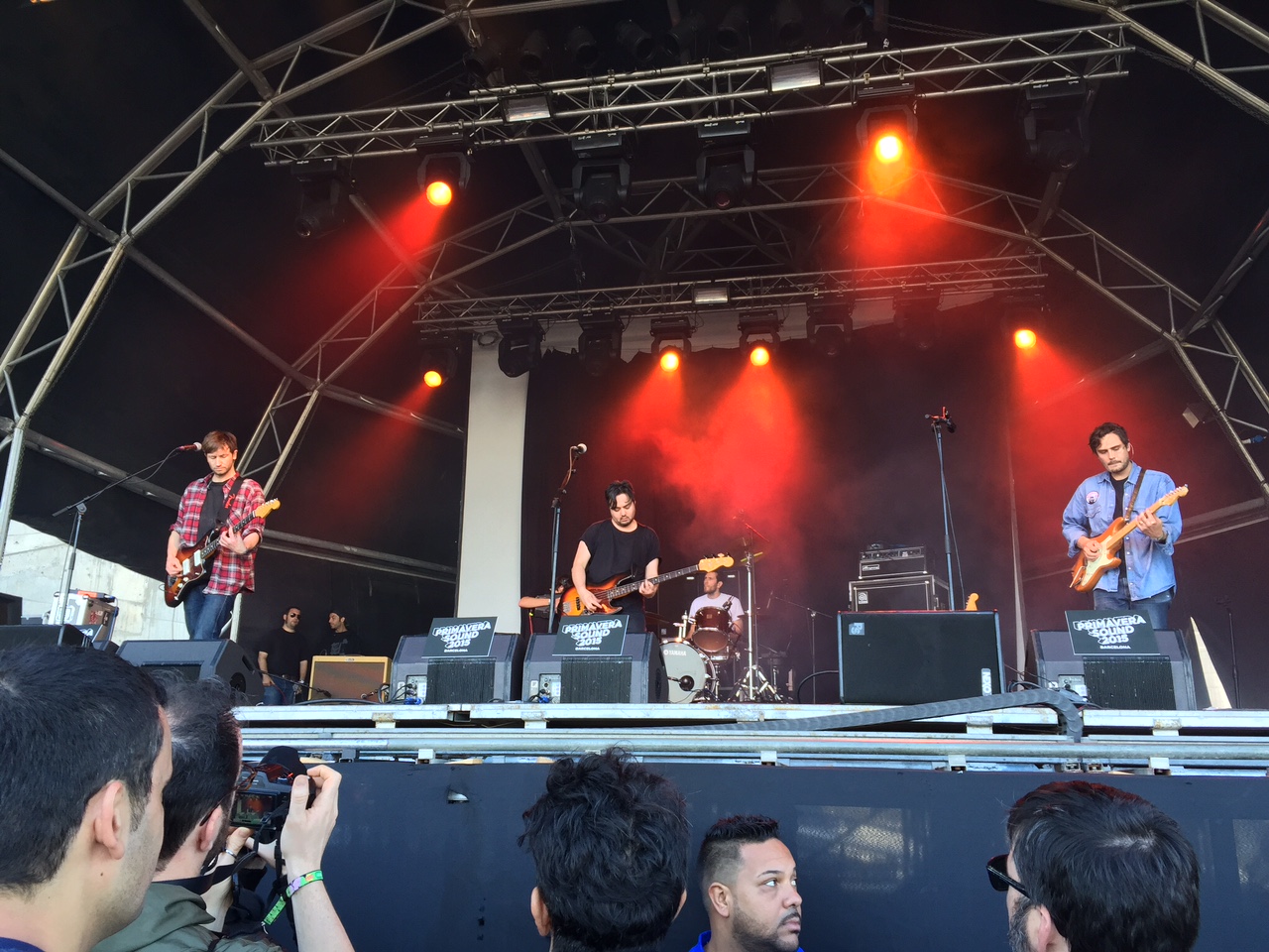 Le troisième jour est souvent le plus difficile au Primavera car, on a les deux derniers soirs dans les pattes et les journées touristiques également. La plante des pieds brûle un peu. Faut être con aussi pour faire un festival en Converse… Mais on ne se changera pas, car on aime souffrir, ça ajoute du panache ! Nous sommes arrivés sur le festival assez tard ce soir-là et je n’ai donc pu voir qu’une partie du show de Foxygen. Je dis show au sens propre hein, car sur scène, c’était théâtral… Littéralement. À la limite du clownesque, mais cela a eu l’air de faire son effet sur le public venu les écouter. Prenez un Rocky Horror Show, un poil de Bowie et une dose des Stones et mélangez dans un shaker, servez chaud… Nous nous sommes placés en face pour accueillir Interpol sur lesquels, ne les ayant jamais vus en live, j’avais de grosses attentes, trop grosses peut-être. Le set démarre normalement et quelques morceaux phares, tels Evil, Slow Hands, Not Even Jail, tous trois sortis d’Antics propulsent tour à tour le show dans une dynamique positive. Malheureusement entre ces morceaux, le choix de la setlist me laisse quelque peu interloqué à défaut d’être totalement « interpolé ». Certains morceaux ne sont clairement pas taillés pour la scène et l’on préférerait surement les écouter à la maison, quitte à bouger un peu de la tête. Je me demande pourquoi ils n’ont pas refait la setlist de leur passage à l’Olympia en début d’année. Du coup, je regrette de ne pas avoir pu les voir, faute de temps à la salle Apolo de Barcelone jeudi en arrivant. Toutefois, et pour vous rassurer, si j’ai été déçu sur cet aspect, le live en lui-même n’a rien à se reprocher, le groupe non plus, ils ont été parfaits, ils ont fait de l’Interpol de façon plus que convaincante. Mais quelque part au fond de moi, je suis un poil déçu.