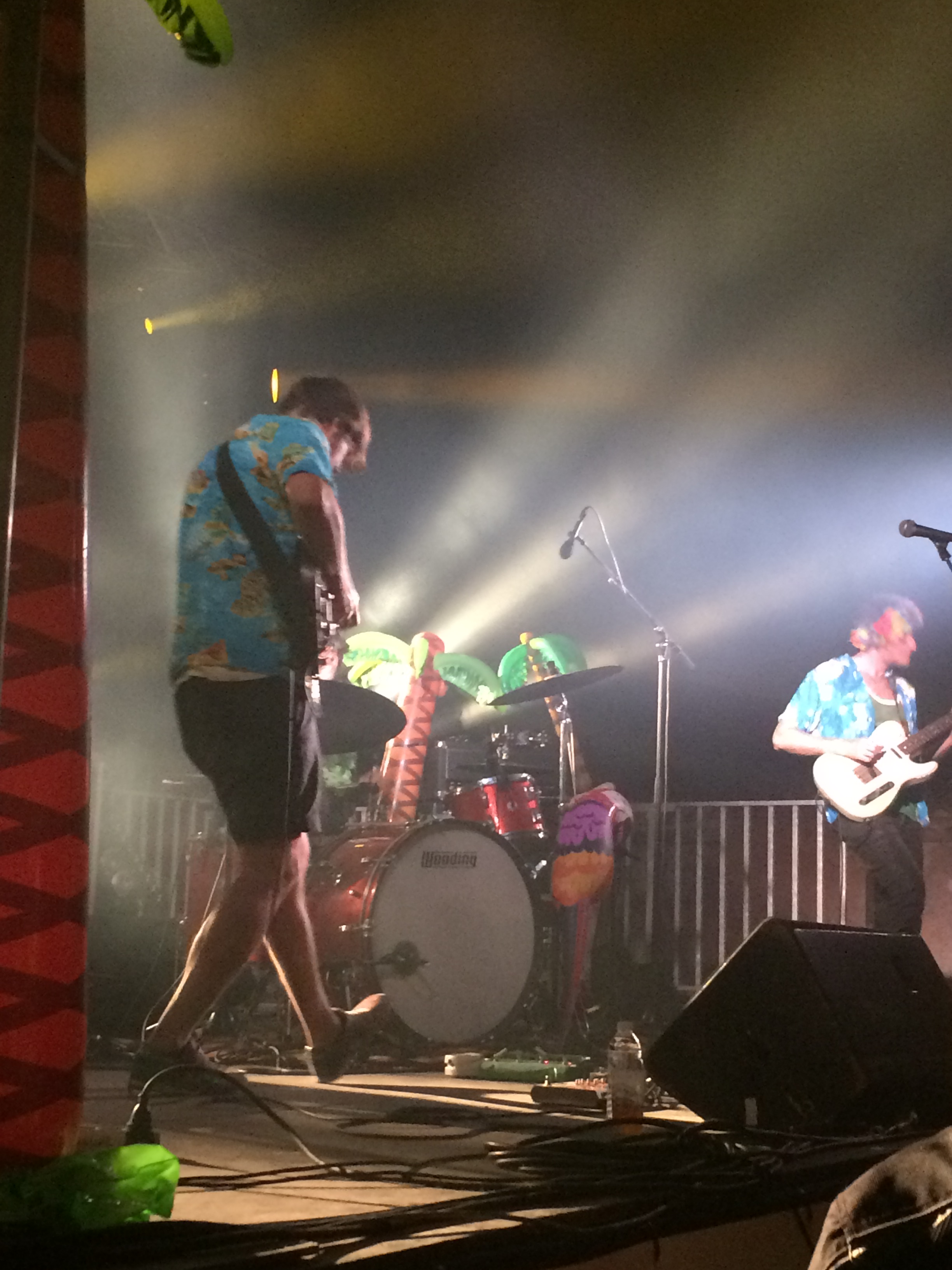 Après un DJ set qui a lieu entre chaque concert, le groupe le plus improbable du festival monte sur scène entouré de palmiers et de perroquet gonflables : Francky Goes To Pointe-à- Pitre. Ce combo de Tours dont les membres sont issus de Pneu, Headcases et Mr Protector a deux buts : faire découvrir le style dont ils sont précurseurs, le Zouk Noise ; et faire bouger suffisamment le public jusqu’à arriver à lui faire faire une chenille. Mission réussie.