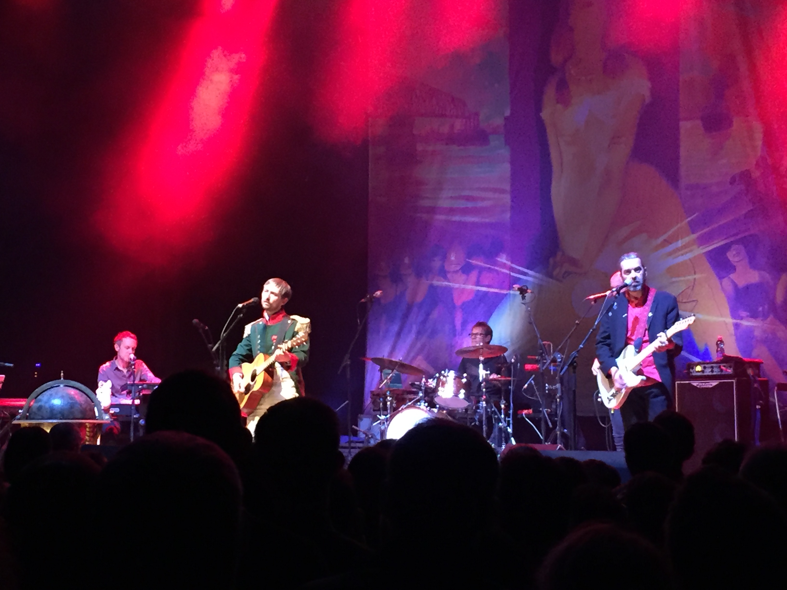 Plus d’une demi-heure de pause et les musiciens accompagnant Divine Comedy entrent en scène, suivis de près par Neil Hannon, costumé en Napoléon pour l’occasion. C’est Napoleon Complex qui démarre logiquement le set, le bonsoir viendra plus tard, Hannon aime jouer avec les codes. La salle réagit immédiatement, comme de bien entendu, la tête d’affiche de ce soir ne trompe pas. L’audience est assez hétérogène et l’on remarque immédiatement un certain nombre de « grisonnants » présents ici (et dont je fais partie). A noter que le live est retransmis sur la plateforme vevo pour iflix32 Music, le netflix des concerts. Au total, ce sont vingt cinq morceaux piochés dans sa discographie que Neil Hannon joue de façon assez détendue (mais plus vite que sur album), avec son sourire aux lèvres et ses yeux un peu tristes. Après le costume de l’empereur, et après un passage en coulisse, c’est un homme de la city qui rejoint la scène: costume noir cintré, chapeau melon et parapluie pour balancer une version vitaminée de Complete Banker et de son humour noir bien senti. Et puis, à l’autre bout il y a l’apitoiement total de l’artiste sur une riche anglaise, sa jeunesse sur la côte d’azur, plus tard obligée d’epouser quelqu’un qui ne l’aime pas et de donner naissance à des enfants qu’elle ne connait pas vraiment. La mélancolie A Lady of a Certain Age nous ramène à cette solitude que l’on connait tous un jour ou l’autre et on se prend d’une certaine compassion pour ce personnage de fiction.
